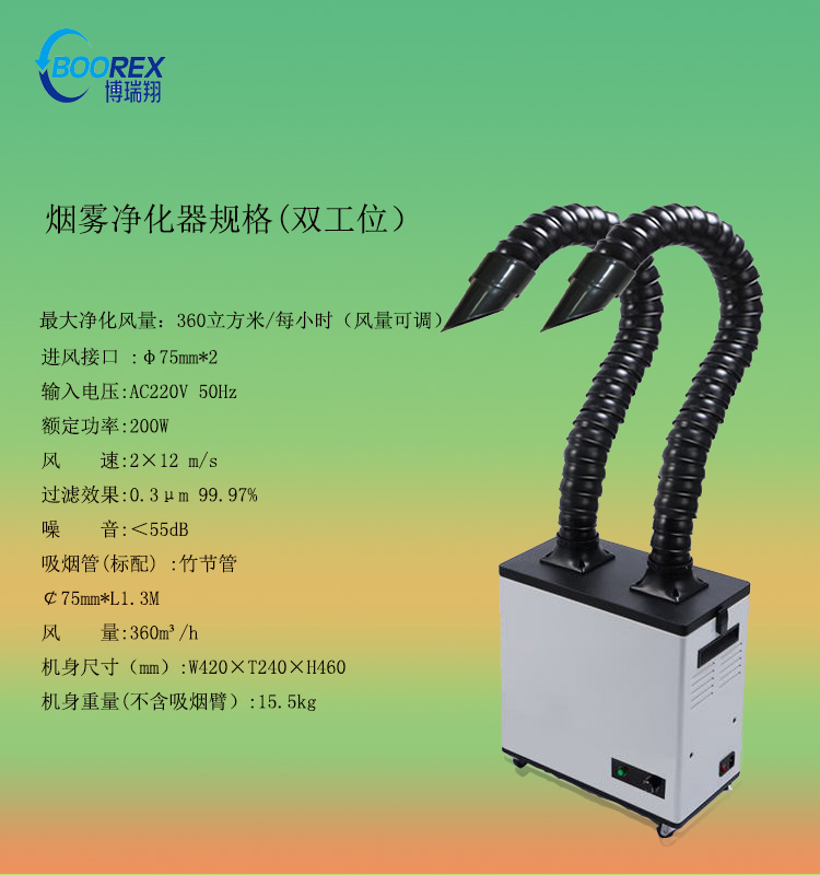 ◆機(jī)器配以萬(wàn)向吸煙臂,可隨意變向、定位(長(zhǎng)度可根據(jù)客戶(hù)要求定制)。端部裝以新型集煙罩,造型獨(dú)特,吸煙效率更高。