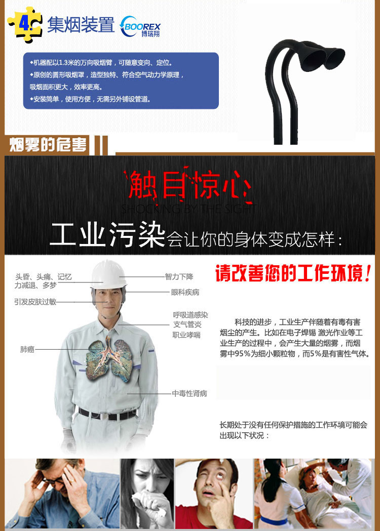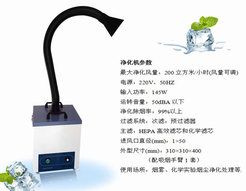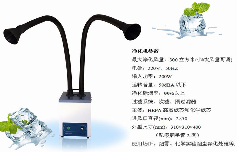 ◆機器配以萬向吸煙臂,可隨意變向、定位(長度可根據客戶要求定制)。端部裝以新型集煙罩,造型獨特,吸煙效率更高。